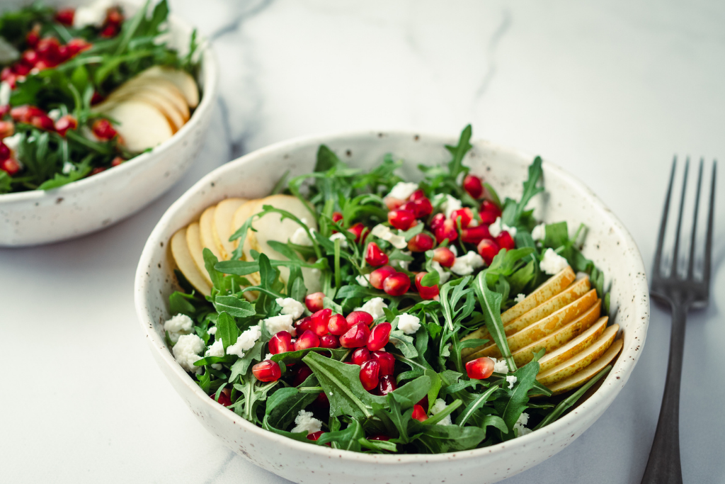 Turna Sızma Zeytinyağı ile Narlı Roka Salatası