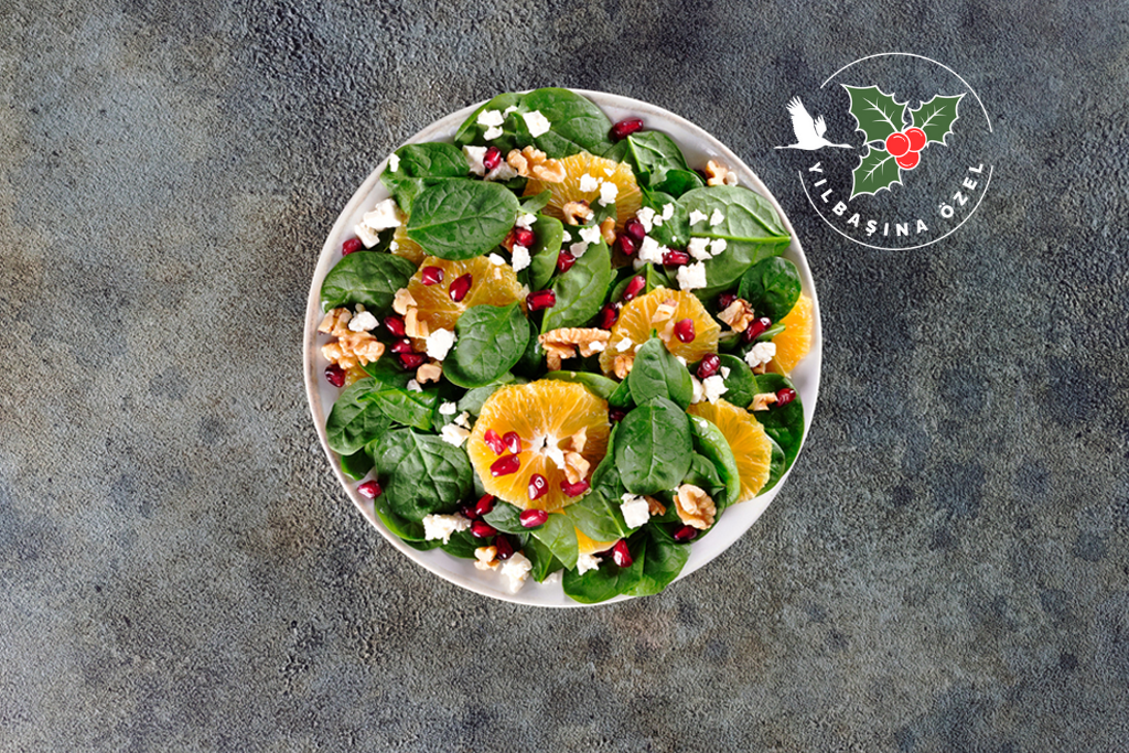 Turna Sızma Zeytinyağı ile Nar ve Cevizli Kış Salatası