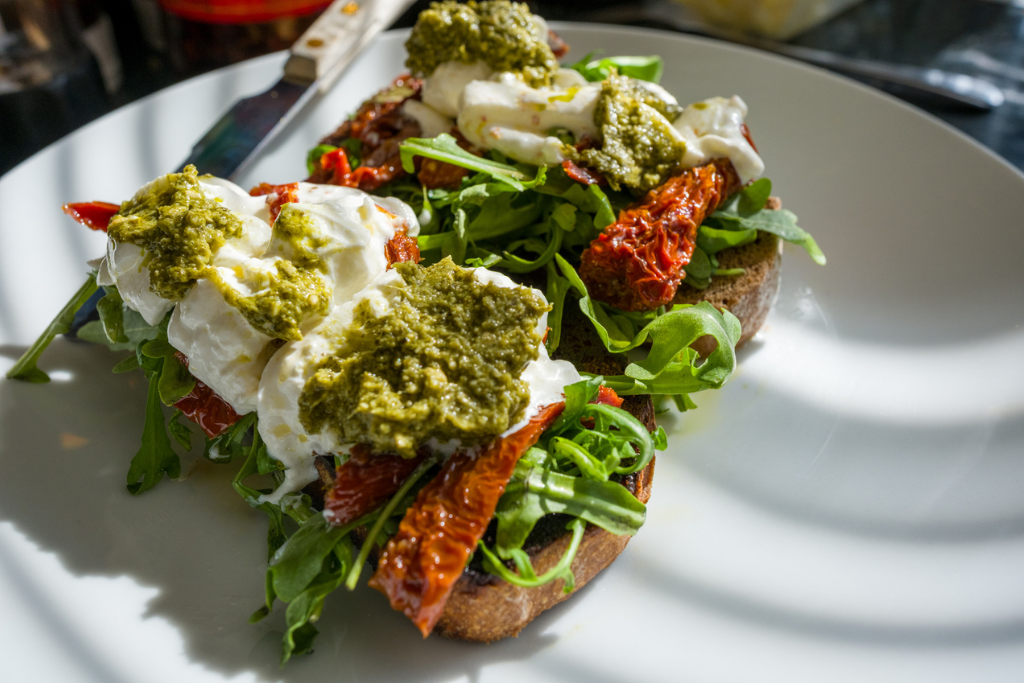 Turna Sızma Zeytinyağı ile Pestolu Beyaz Peynirli Sandviç