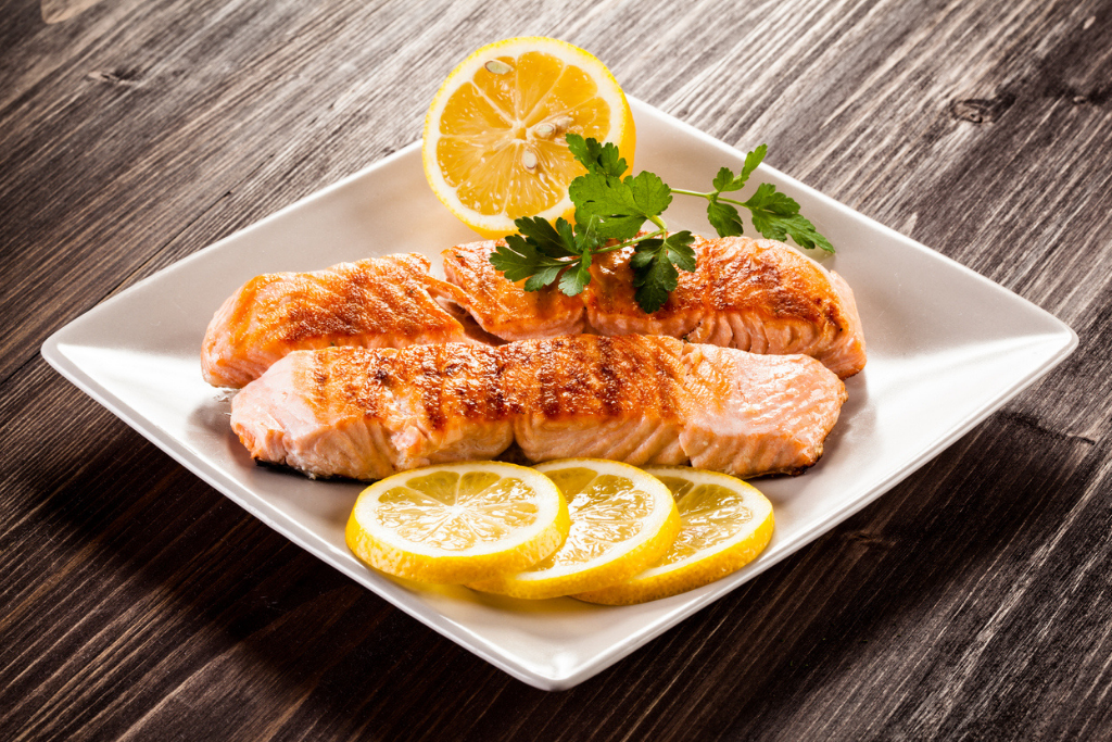Ingredients: 4 salmon fillets 2 tablespoons Turna Sunflower Oil 1 lemon (sliced) 3 cloves garlic, crushed 1 teaspoon salt 1/2
