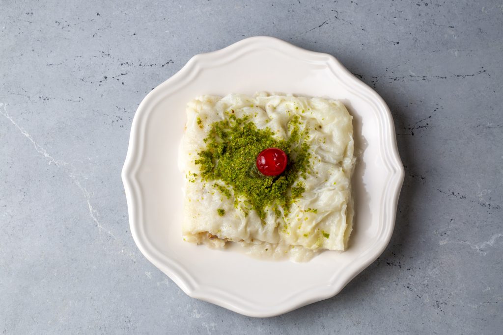 Son yufkanın üstüne kalan sütlü karışımı dökün ve üzerini cevizle süsleyin. Nar taneleri ve gül yaprağı gibi süslemelerle tatlınızı zenginleştirebilirsiniz.